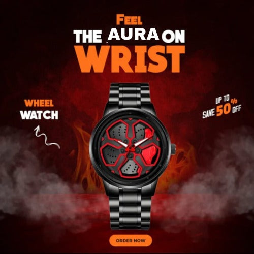 Original black Aura watch with metallic chain